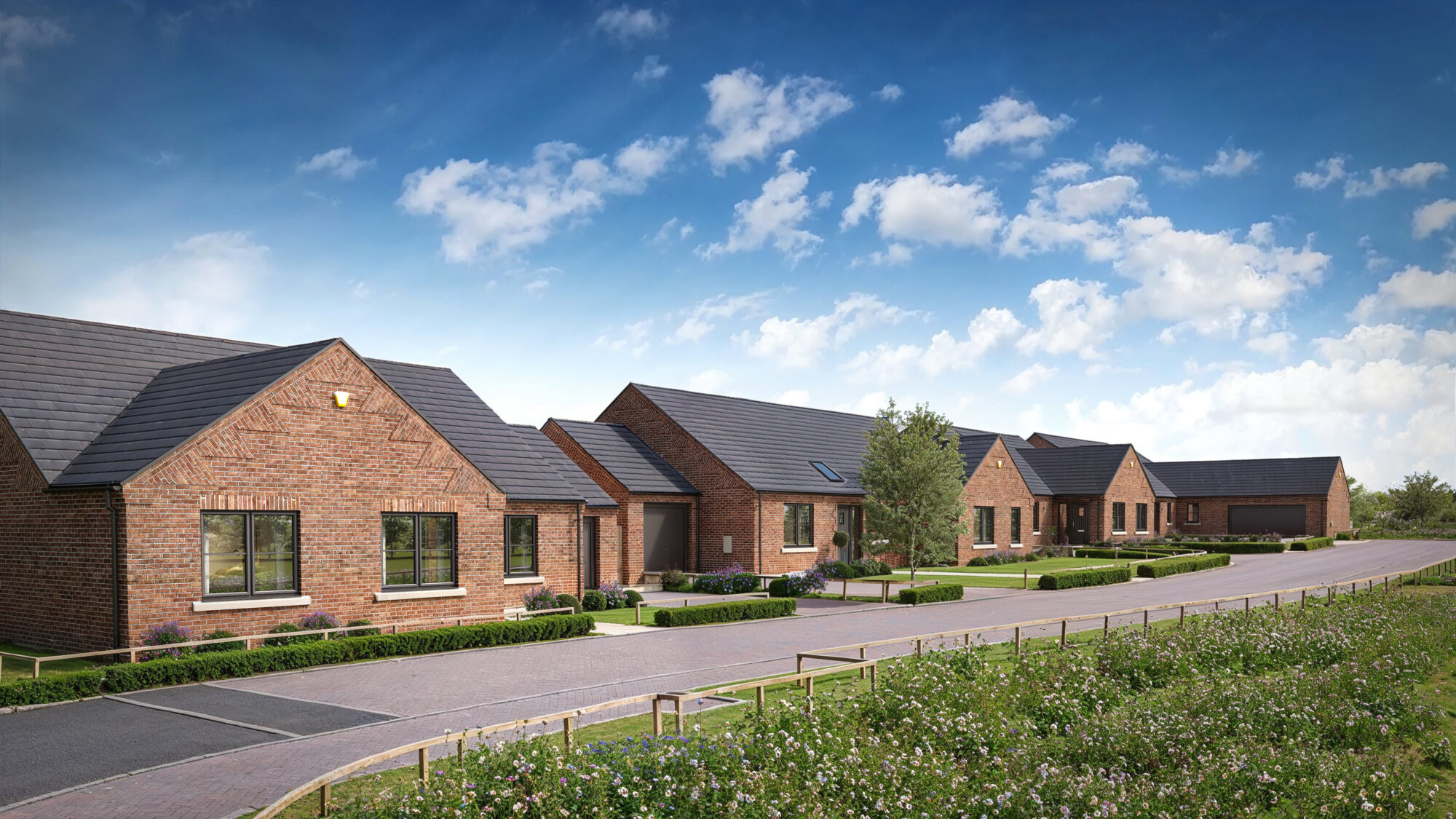 Our collection of brand new 2-bedroom and 3-bedroom single storey homes each offer spacious, modern interiors and a traditional exterior design, complementing the vernacular of the area and surrounded by lush green fields.