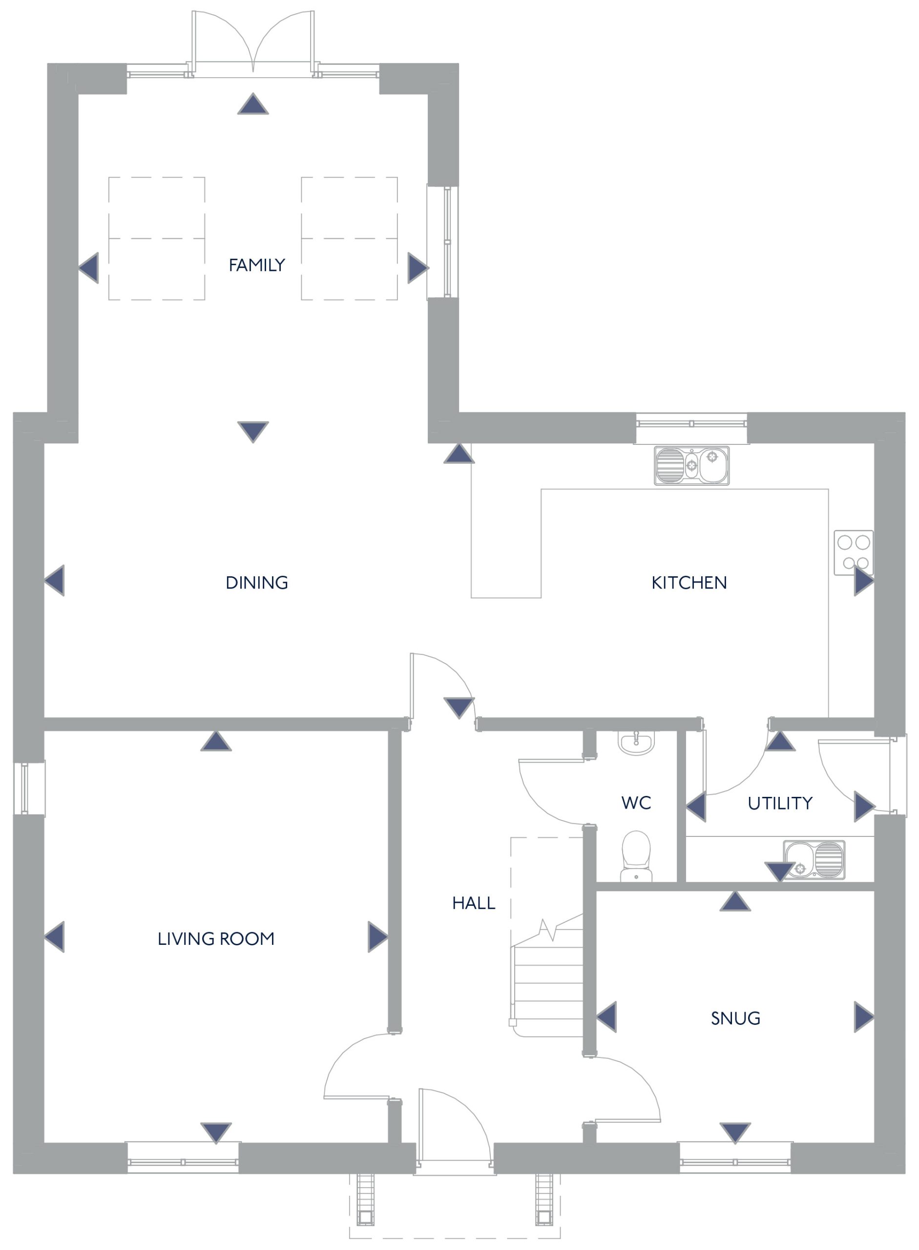 The Elm is a beautifully designed four-bedroom detached home offering spacious modern living for the whole family. Its open-plan kitchen, dining, and family area forms the heart of the home with French doors opening onto a large rear garden.