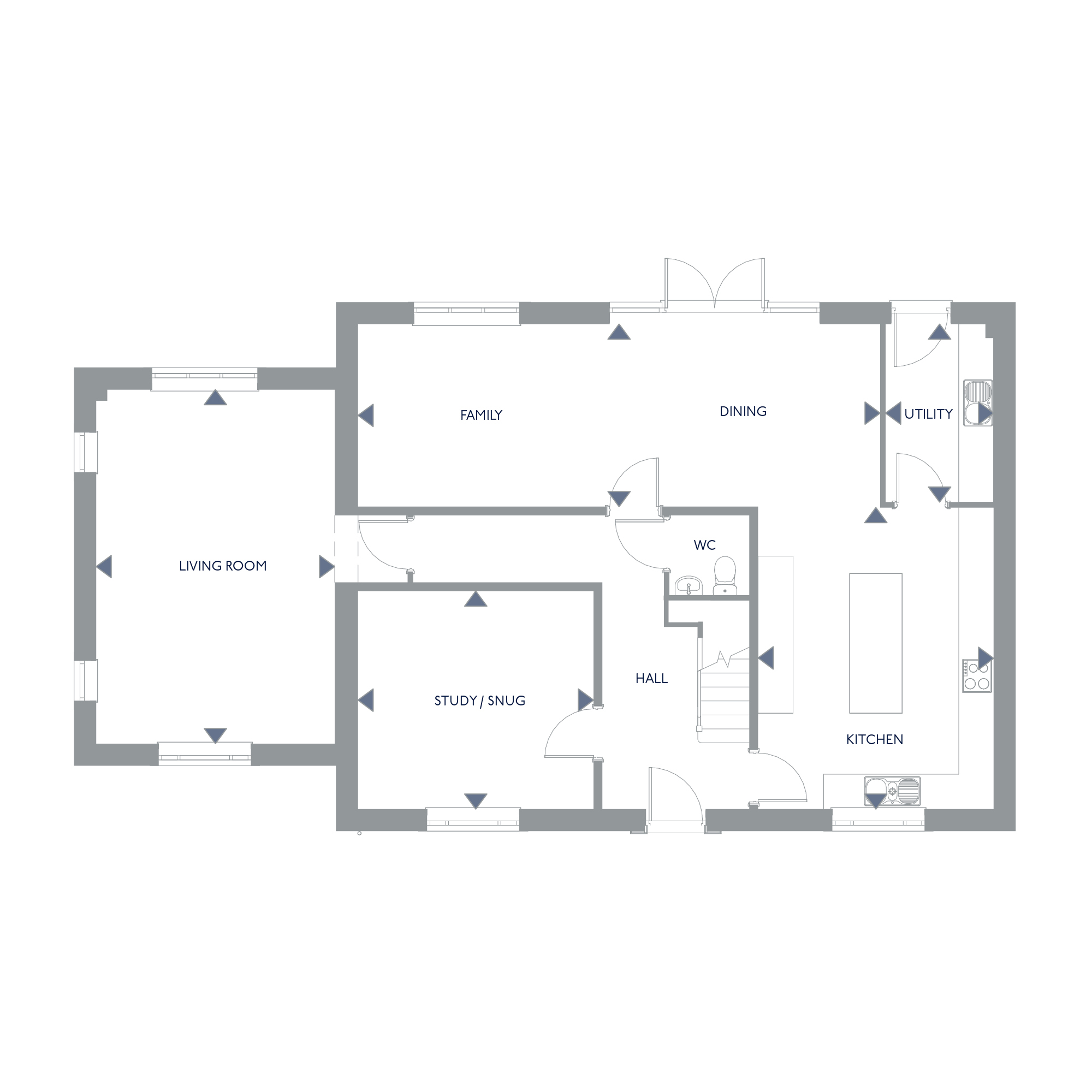 The Marton is an impressive five-bedroom detached home offering expansive living space for growing families. Its open-plan kitchen, dining and family area creates a stunning central hub, with French doors opening onto the garden for seamless indoor-outdoor living.