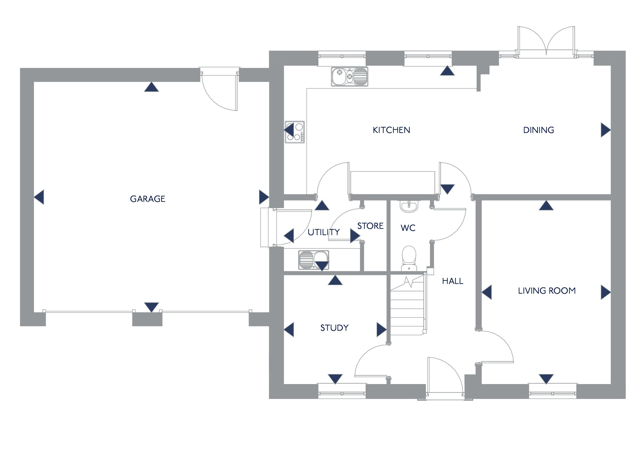 • Downstairs WC and utility room with personnel door into the garage